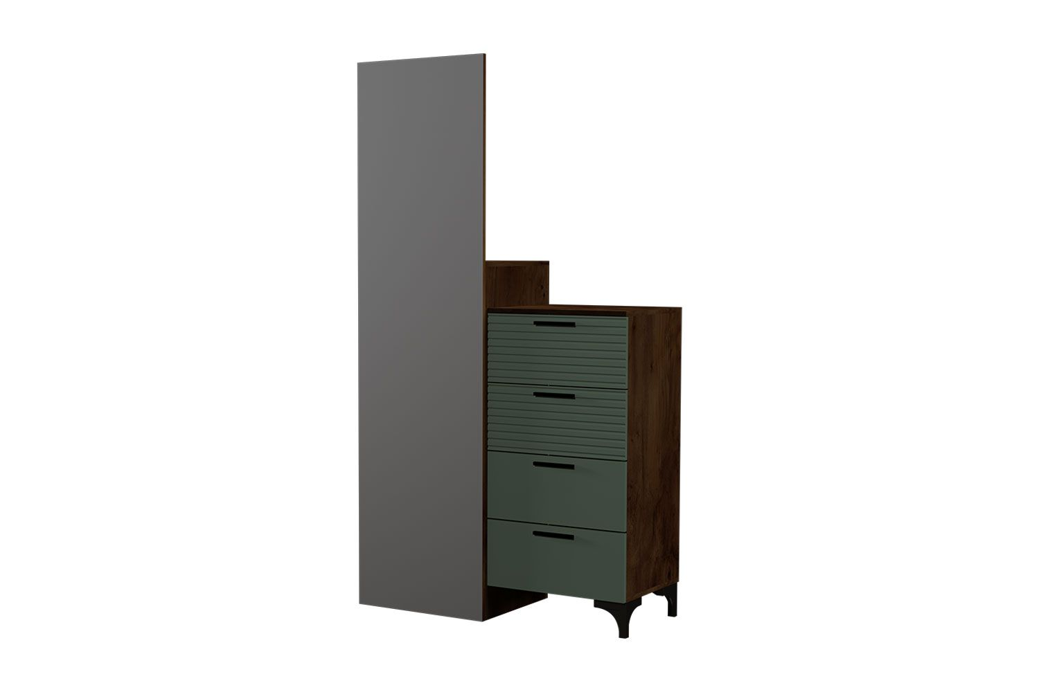 В комоде четыре ящика на шариковых направляющих полного выдвижения.