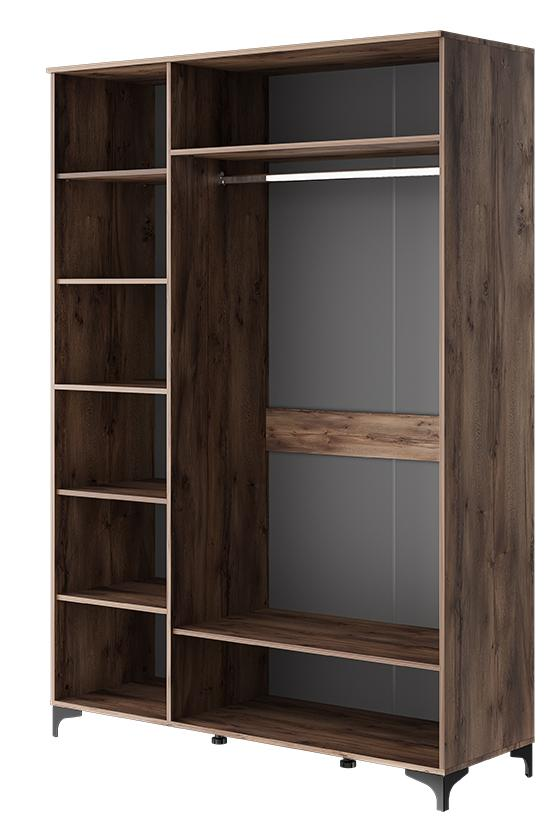 Шкаф с фрезерованными фасадами имеет две секции. За левой секцией расположены полки, а за правой – штанга, что обеспечивает удобное размещение вашей одежды и аксессуаров.