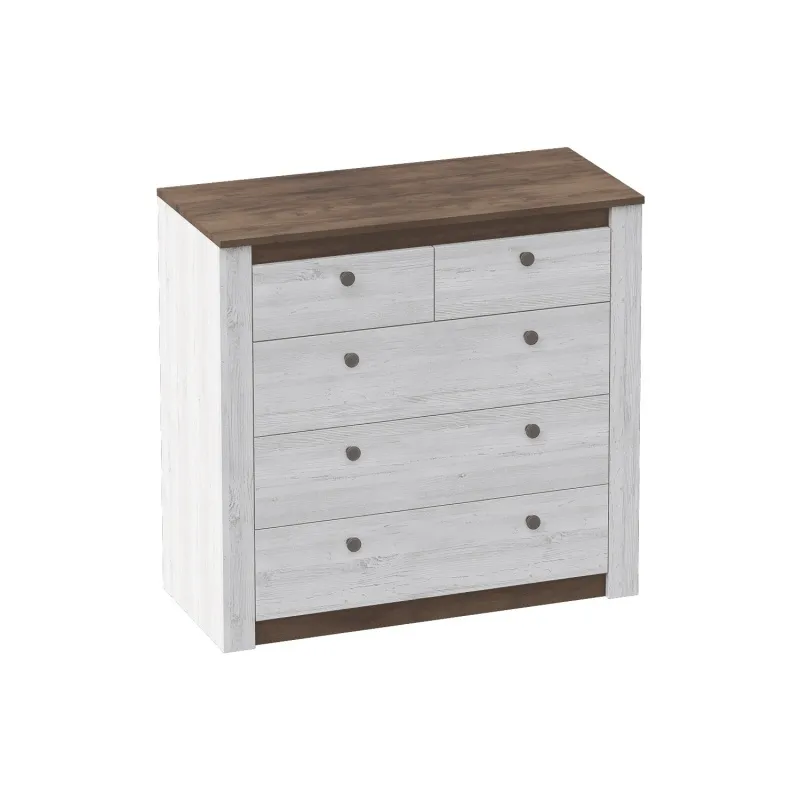 Комод "Даллас" состоит из пяти выдвижных ящиков на шариковых направляющих, что позволяет удобно хранить вещи и поддерживать порядок в комнате.