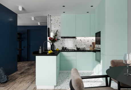 Кухня Валерия создана для тех, кто любит жизнь во всех её красках. Яркие цвета заряжают позитивом и влюбляют в себя с первого взгляда. Плавные линии фасада напоминают движение водной глади, создавая ощущение фактуры и лёгкости.