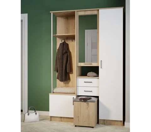 Оригинальная прихожая Дуся шириной 1300 мм с выкатной тумбой и зеркалом.