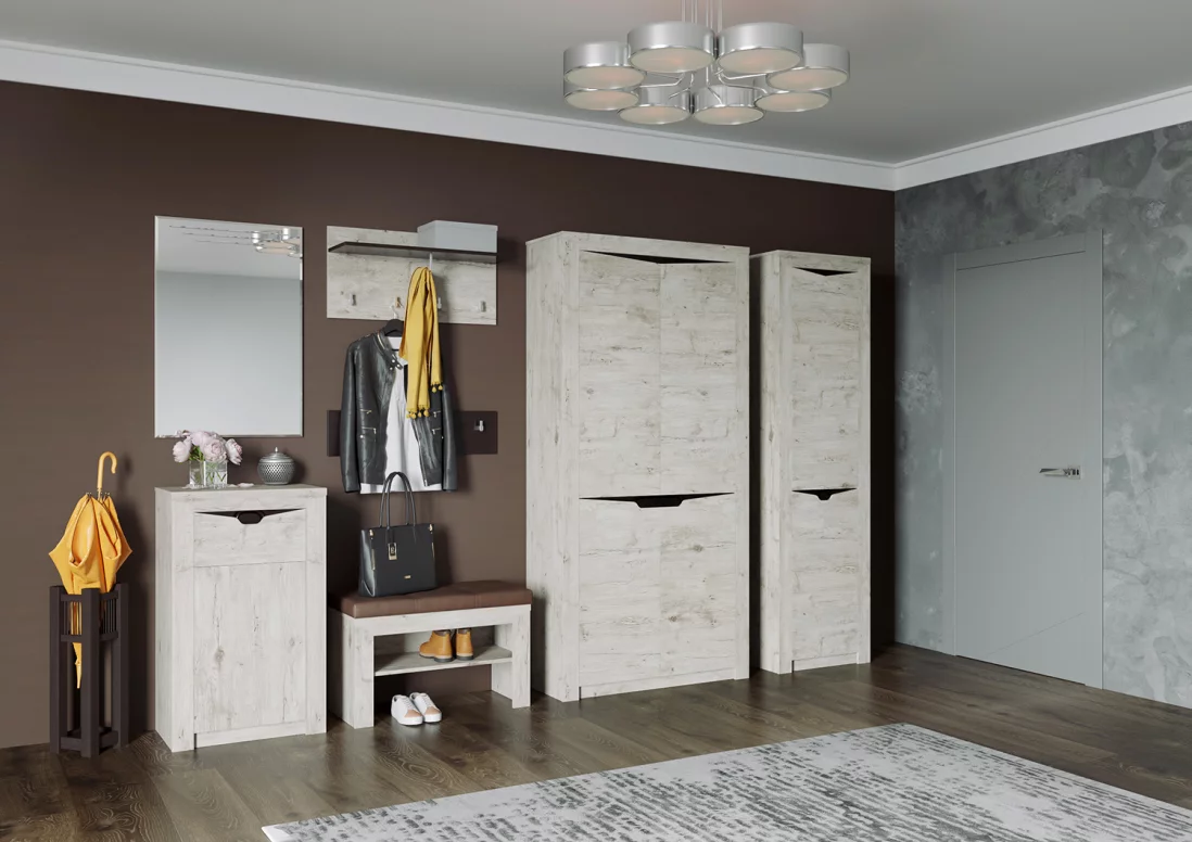 Прихожая “Соренто” представляет собой стильное и функциональное решение для вашего дома. В мебели мы используем только качественные, безопасные материалы, что обеспечивает долговечность и надежность изделия. На фасадах имеются декоративные вырезы, выполняющие функцию ручек.