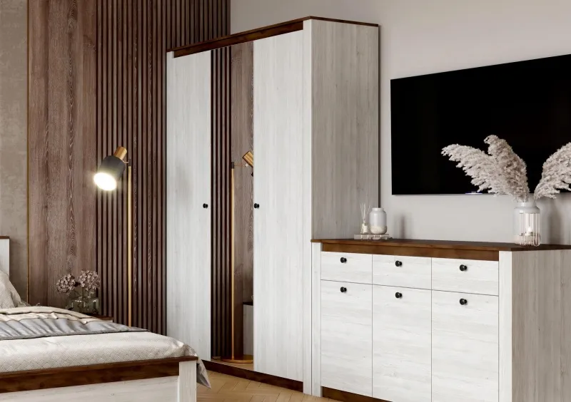 Трехдверный шкаф “Даллас” представляет собой стильное и функциональное решение для хранения одежды, аксессуаров и других вещей. Он выполнен из качественных, экологичных материалов, что обеспечивает его безопасность, долговечность и надежность.