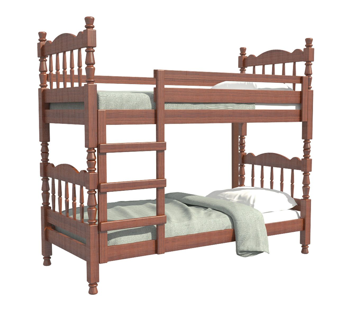 Двухъярусная кровать Соня из массива выполнена в классическом стиле, в натуральных древесных оттенках.