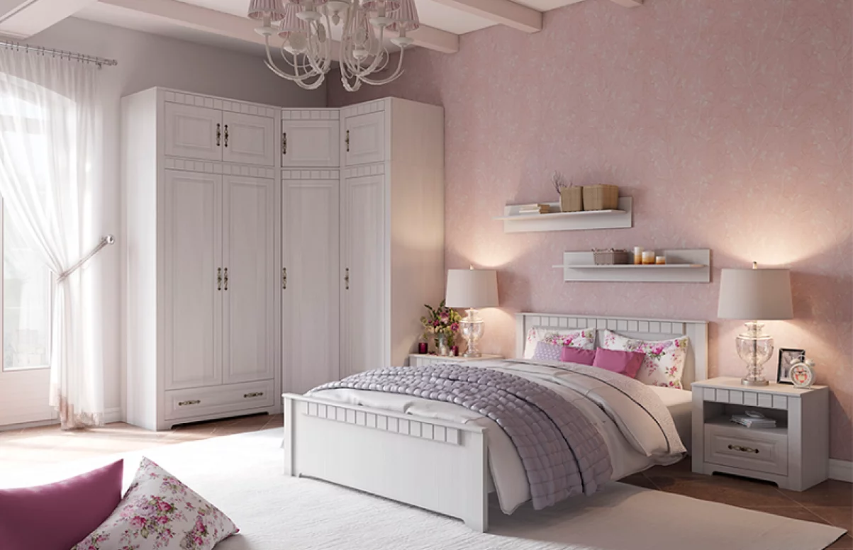 Спальный гарнитур “Прованс” - это прекрасное решение для тех, кто хочет создать уютную и теплую атмосферу в своем доме. Он выполнен в стиле прованс, который характеризуется использованием натуральных материалов и светлых оттенков.
