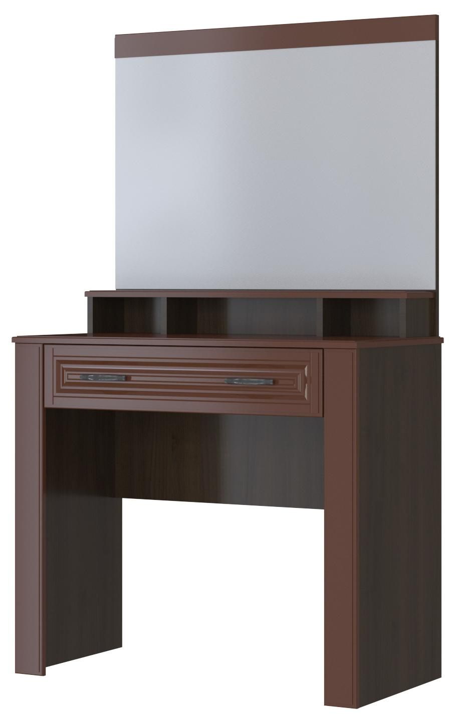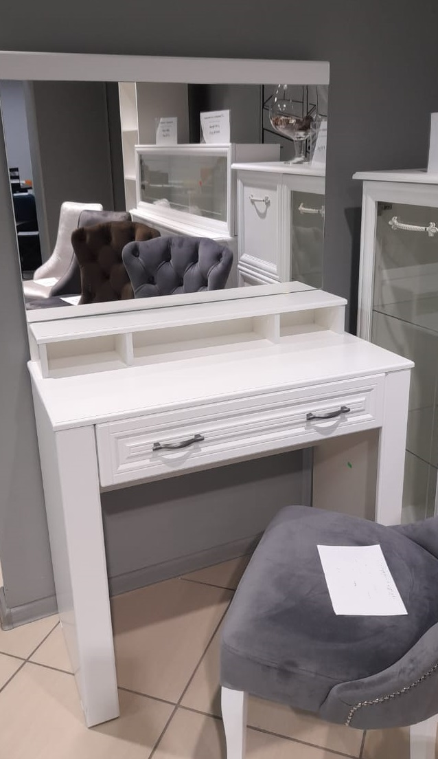 Туалетный стол из спального гарнитура Кантри. Габаритные размеры (ШхГхВ), мм: 908х1551х455. Корпус - ЛДСП, фасад - МДФ покрытый лаком.