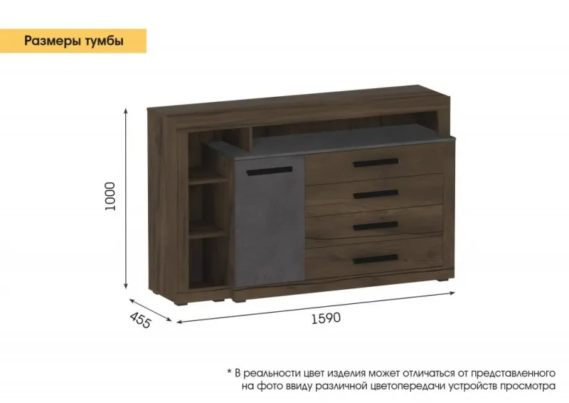 При оформлении спальни главное — соблюдать гармонию во всем: от цветовых сочетаний до формы мебели. Мы всегда учитываем это правило при разработке наших коллекций и подборе материалов. Тумба c дверцей и 4 ящиками для спальни "Глазго" — яркий пример реализации данной концепции. В таком цветовом исполнении мебель для спальни можно вписать в самые разные интерьерные стили: цветовая гамма отлично сочетается с другими оттенками. Благодаря компактности останется место и для других функциональных предметов, которые обязательно должны быть в комнате. Вы приобретаете не просто мебель, а возможность создать уникальное пространство, в котором сможете полноценно отдыхать.