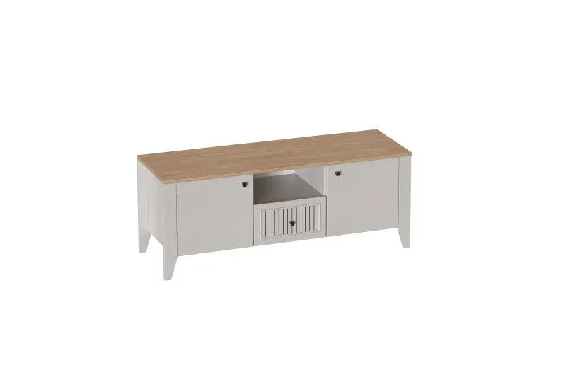 Тумба ТВ "Валенсия" выполнена в комбинации Дуб натуральный светлый / Персидский жемчуг и оснащена одним ящиком на шариковых направляющих (без амортизаторов). . Она выполнен из безопасных, качественных материалов, что гарантирует долговечность и сохранение первоначального вида на протяжении долгого времени.